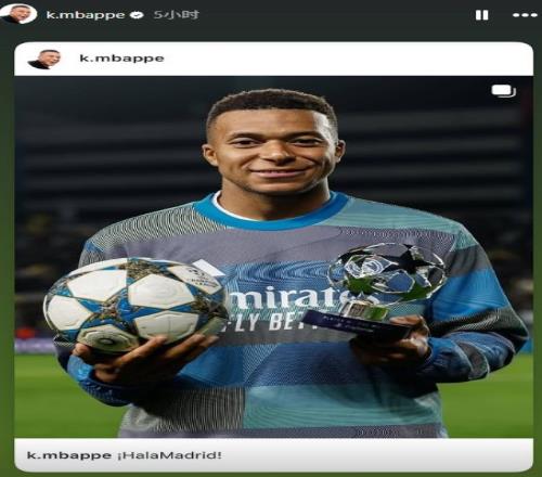 賽后,姆巴佩也當(dāng)選本場(chǎng)比賽最佳球員,他在社媒也曬出自己領(lǐng)取MVP獎(jiǎng)杯照片,并配文:“Hala Madrid?。佑停R德里)”