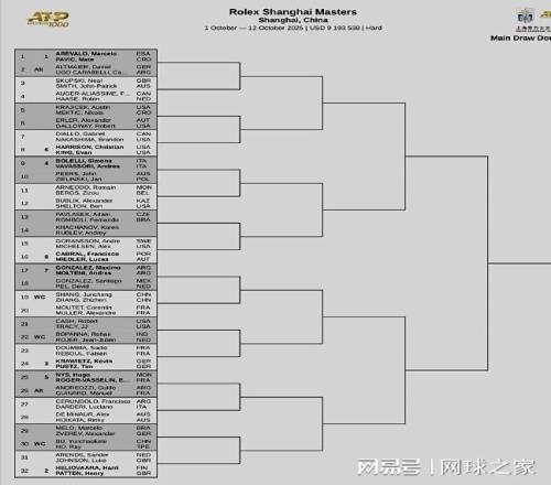 另外,上海大師賽的男雙簽表昨天下午出爐。中國有兩對組合參賽,其中商竣程/張之臻首輪對陣法國組合穆泰/A-穆勒,布云朝克特/何承叡迎戰(zhàn)梅羅/茲維列夫。