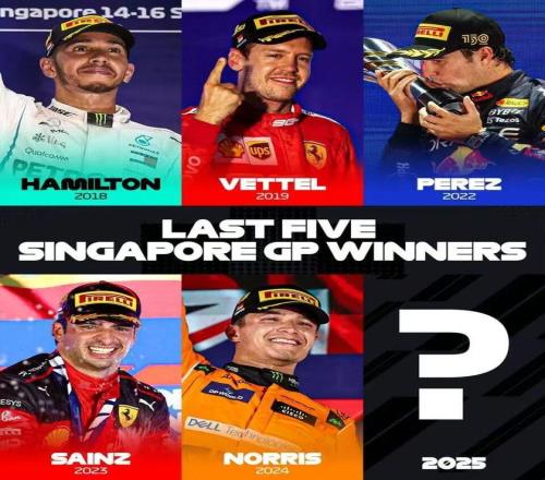 在過去的5屆新加坡大獎賽上,分別迎來了5個不同的分站冠軍,分別是漢密爾頓、瓦特爾、佩雷茲、塞恩斯以及諾里斯,如果這一魔咒繼續(xù),那皮亞斯特里和維斯塔潘無疑是最具“玄學(xué)”色彩的,但核心還是車手自己的表現(xiàn)。