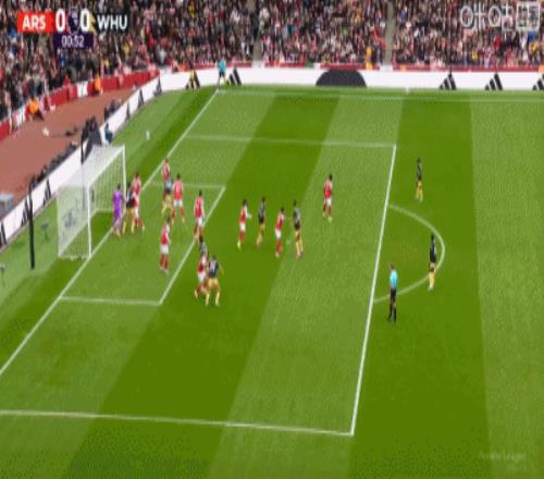 第32分鐘,薩卡右路傳中,阿森納禁區(qū)圍攻連續(xù)打門被擋