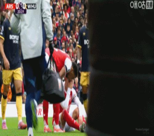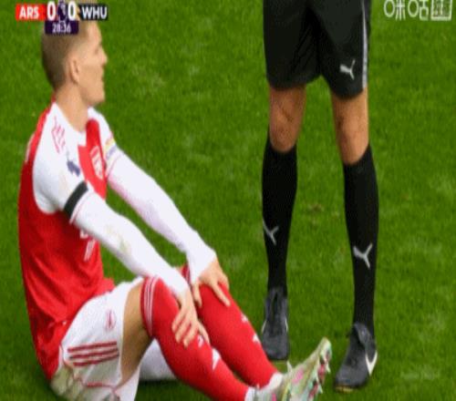 第21分鐘,厄德高伸腳攔截受傷,隊(duì)醫(yī)上場進(jìn)行治療