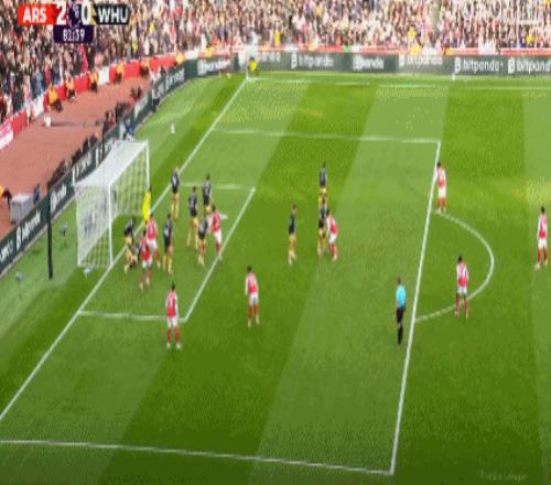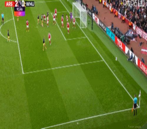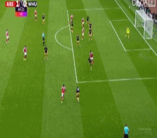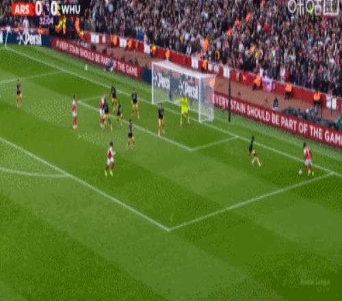 第38分鐘,賴斯禁區(qū)內(nèi)推射破舊主,隨后選擇不慶祝,阿森納1-0西漢姆聯(lián)