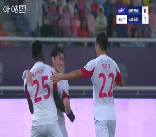 另外兩場比賽中,山東泰山坐鎮(zhèn)主場迎戰(zhàn)云南玉昆。上半場泰山隊(duì)進(jìn)入狀態(tài)太難,云南玉昆反客為主,第32分鐘奧斯卡傳中助攻侯永永頭球破門,幫助球隊(duì)1-0打破僵局。尾聲階段,唐淼單刀球入禁區(qū)后的推射偏出,上半場云南玉昆客場1-0領(lǐng)先。