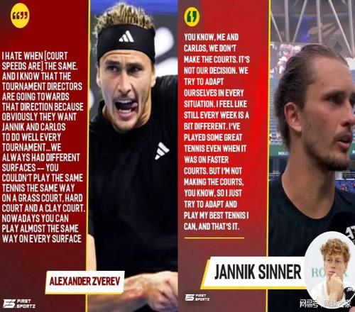 換個(gè)角度想,與其說(shuō)賽事為了讓阿卡和辛納兩人取得好成績(jī)從而有意改變場(chǎng)地速度,倒不如看看這二人包括茲維列夫,今年在全場(chǎng)地的表現(xiàn)究竟如何。
