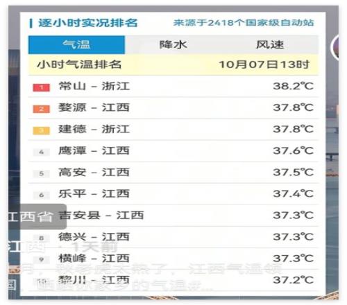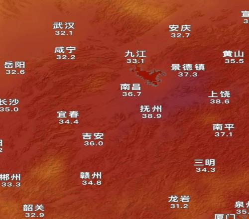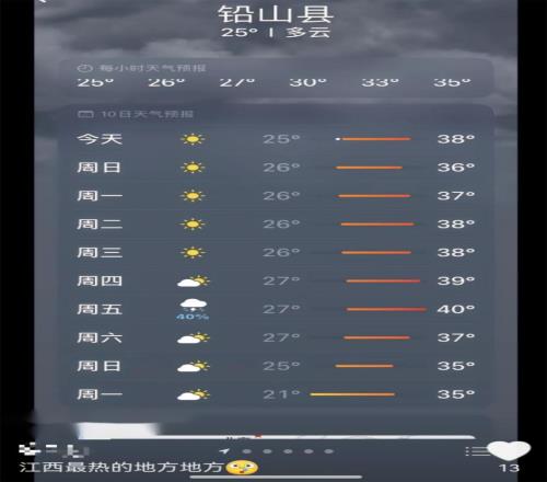 但它依然不是在江西最熱的縣,鉛山縣可能馬上要沖破40度了。