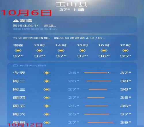 玉山縣可能在本周末達(dá)到39度。