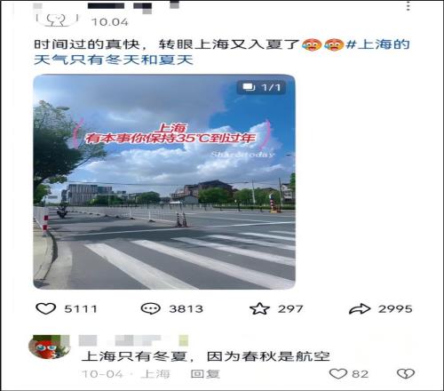 網(wǎng)友都要吐槽:上海只有冬夏,因?yàn)榇呵锸呛娇铡?/p>