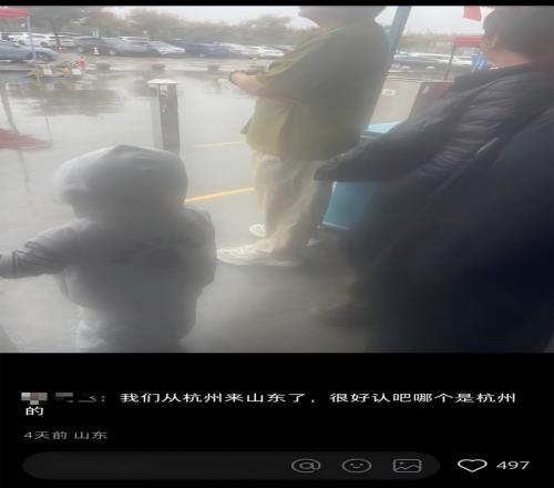 一位從杭州去山東旅游的網(wǎng)友,發(fā)現(xiàn)自己的短袖與別人的羽絨服格外突兀。