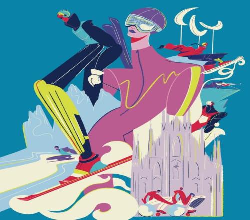 Zagnoli創(chuàng)作了色彩鮮艷的“奧運愿景”海報,海報中央的人物透過奧運五環(huán)造型的眼鏡,以白色山峰為背景,凝視著前方。Zagnoli表示,她的海報既捕捉了家鄉(xiāng)米蘭的時尚感,也體現(xiàn)了科爾蒂納的山地風(fēng)情,同時也歌頌了觀眾和運動員。