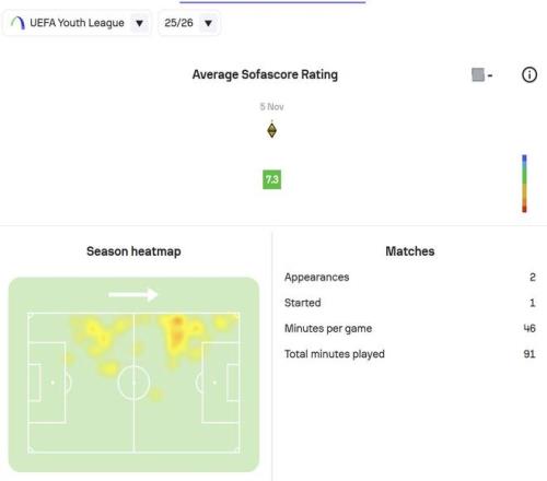 榮譽:2024年4月,隨國際米蘭U16梯隊參加加爾比亞蒂紀念賽,最終獲得亞軍;2025年8月歲國際米蘭U17梯隊參加弗朗切斯科-塞蓋多尼邀請賽,最終獲得冠軍,并榮膺賽事最佳球員。