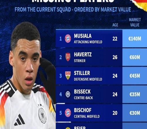 此次未入選德國隊大名單身價前10:穆西亞拉領銜,哈弗茨在列